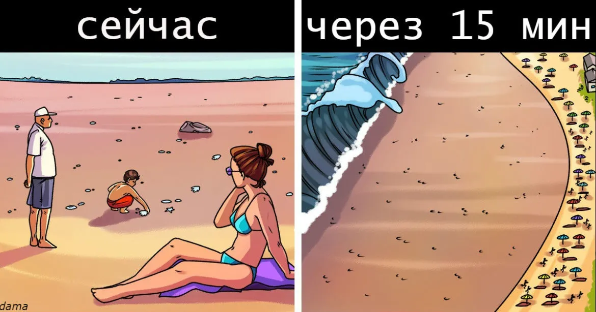 12. Если вы заметили, что вода отошла слишком далеко от берега, это может быть признаком приближения цунами.