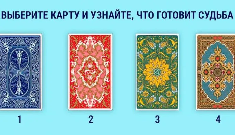 Гадание на картах о том, что будет, по выбору сердца. Вам предложено четыре карты. Рассмотрите их, и не рассуждая, а полагаясь исключительно на случай, — выберите одну из них.