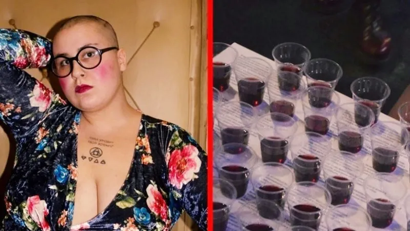 Эпатажная художница Полина Музыка угостила гостей выставки в Москве вином с добавлением своей менструальной крови. Об этом она сообщила на своей странице в социальной сети Facebook.