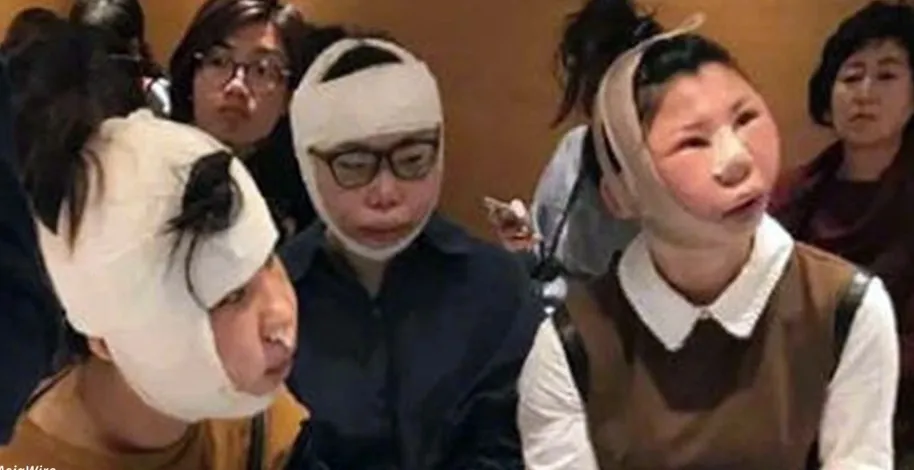 Китайские девушки сделали пластические операции и, не дожидаясь, пока их лица примут человеческий облик, собрались домой.